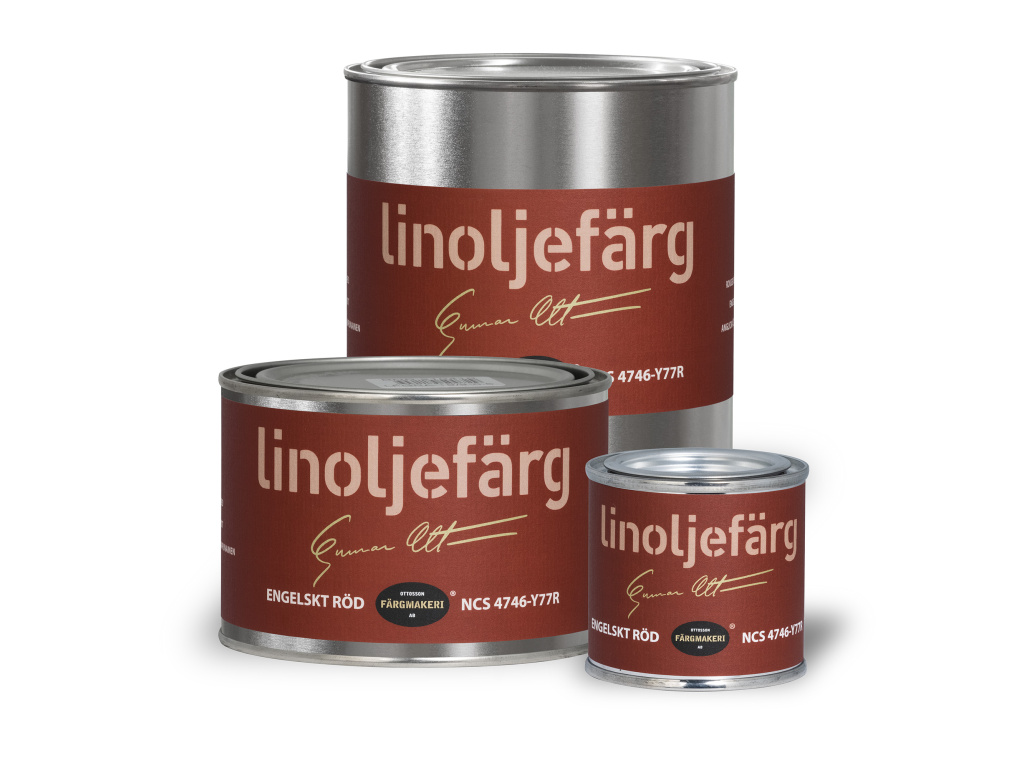 Vyrobeno ze švédského za studena lisovaného vařeného lněného oleje a barevných pigmentů.