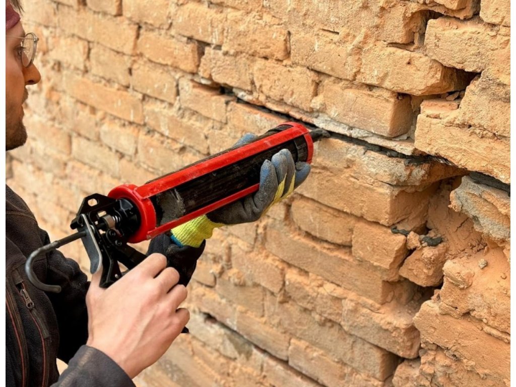 Po vložení do drážek se výztuž zafixuje pomocí speciální tixotropní malty, která zajistí pevné a trvalé spojení se zdivem. Výsledkem je účinné a dlouhodobé zajištění konstrukce, bez nutnosti demolice nebo rozsáhlých zásahů.